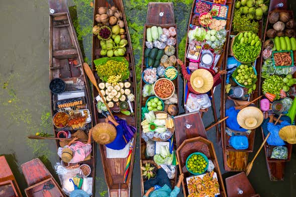 Depois, viajaremos cerca de 10 minutos até Amphawa para visitar seu famoso mercado flutuante. Nesse local, faremos um passeio de barco de uma hora para navegar entre suas diferentes barracas. Ao final dessa viagem tão especial, você terá uma hora de tempo livre para comprar e apreciar a gastronomia tailandesa. Com certeza você encontrará algum prato bem curioso!